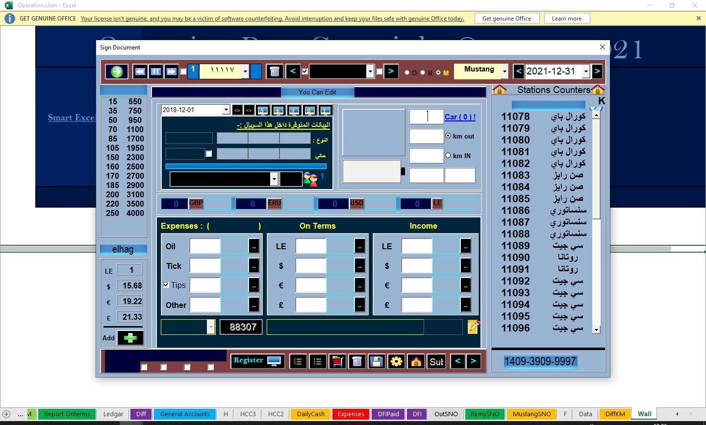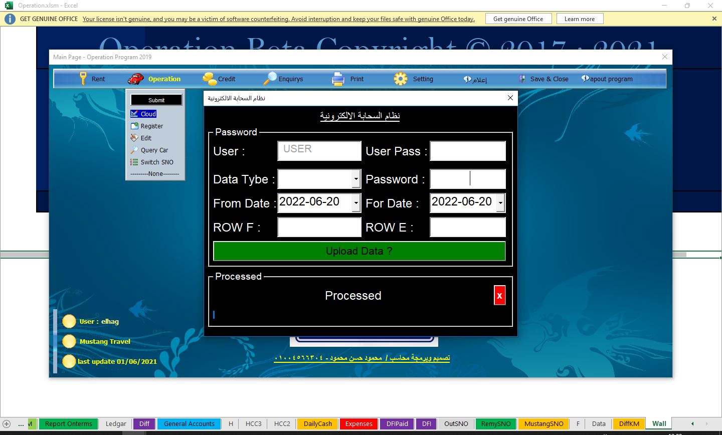 يتضمن هذا المشروع الية لتسجيل المستندات بالسريال الخاص بها بالتنسيق بين هذا البرنامج وبرنامج الهخزينة الذي سبق الحديث عنه ليتكاملا مع بعض لاعطاء النتائج للمراجع بصورة صحيحة واستخلاص التقارير اللازمة وكان هذا البرنامج وبرنامج الخزينة وبرنامج العقود هم عصب الشركة من ناحية حفظ البيانات الخصة بها بشكل يسهل على الموظف الرجوع لها ويتكون من عدة اوامر مجتمعة بمكان وحد لتسهيل الرؤيا لمدخل البيانات وتم اعداد المشروع بهذا الشكل كوجهة نظر الشركة من حيث ان يكون البرنامج مرن للغاية لتعدد المتغيرات اليومية التي تطرأ على الشركة فكان من الممكن ايكون بعدة صور اخرى